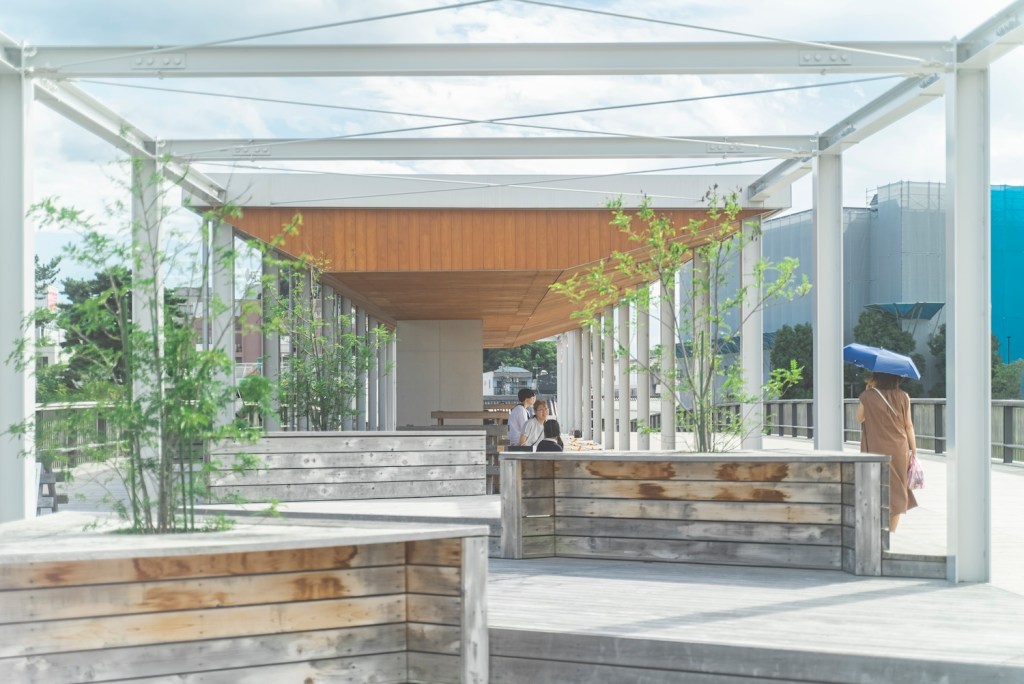 人や自転車が通る人道橋としてつくられた橋上の広場に休憩や日常的に使えるスペースを設計しました。住民の方々日常的に過ごす空間として心象風景を作りたいというから始まったプロジェクトです。